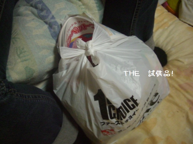 ミネたの足元には先週行ったペットフェアでの試供品を