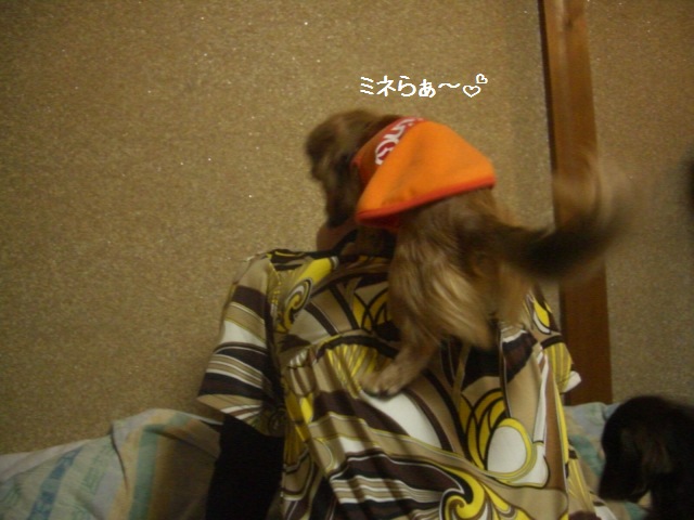 体はとっても元気なのでつ。 (ミネたをよじ登っておりまふ)