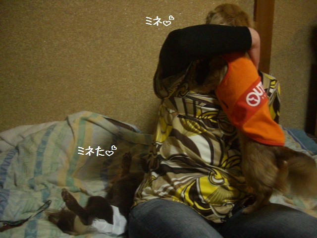 なるべく体力を使わせないように、ママとミネたで抱っこしてまつ。