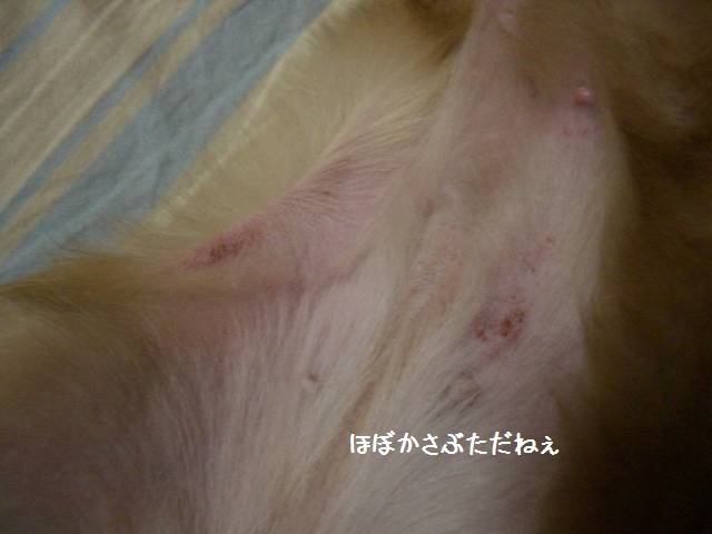 かさぶたにはなってきていゆのでふが、こえを引っ掻いちゃうと・・・。