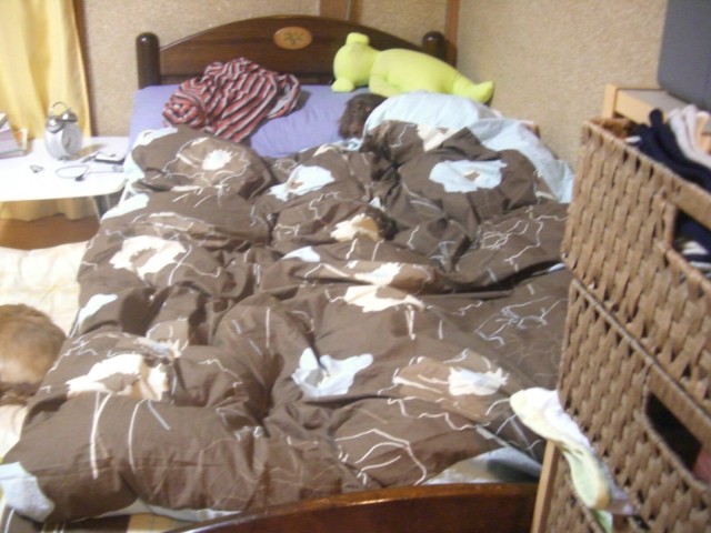 (あそこだけ布団の下にタオルケトがありまふの)