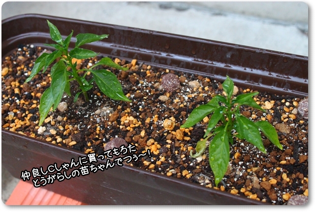 唐辛子の苗を2つ植えまふた。
