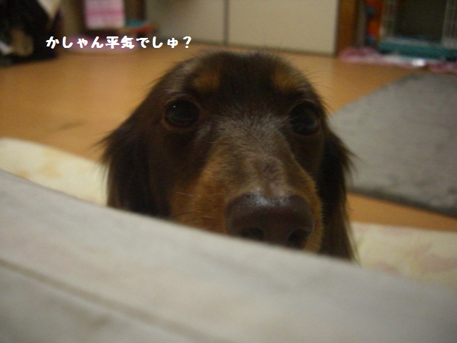 ラッしゃんはベットの下かりゃ ひょこっ とお顔を出して様子を見にきて