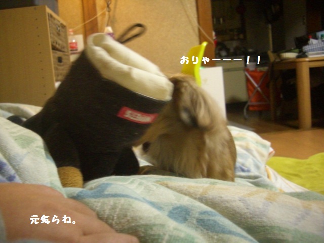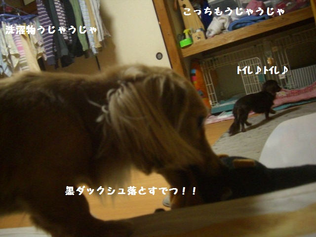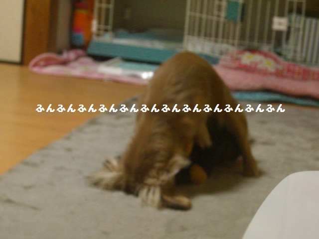 黒ダックスを下に落としては拾って、ベットに上がりまた黒ダックスを落とす!