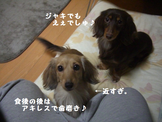 いつもご飯の後にガムやアキレス腱を上げて歯磨きをしてもらいまつ。