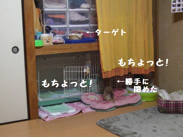 ずーーーっとジャンプしたり、ケージによじのぼったりと何とか取ろうとしていて