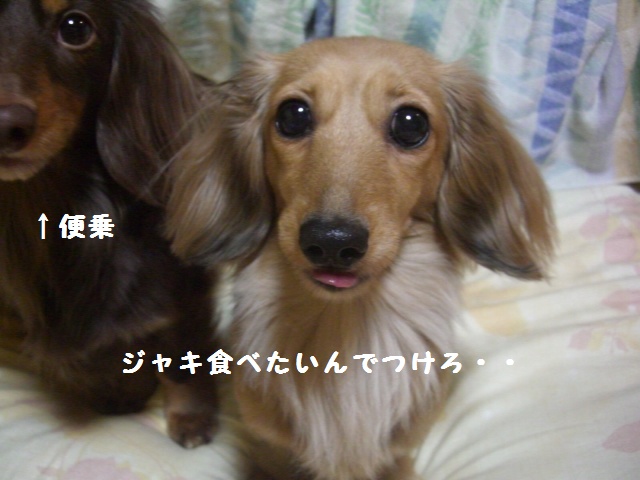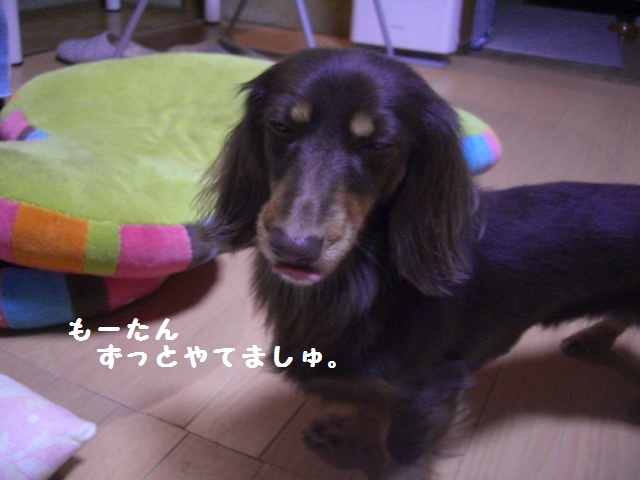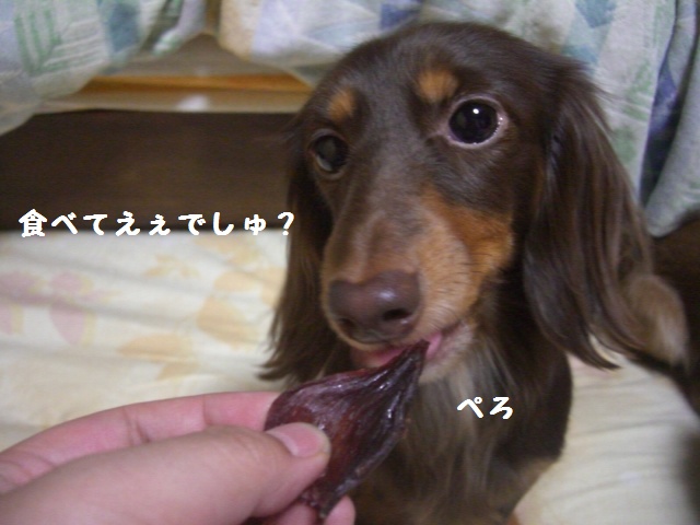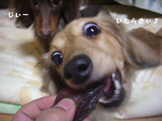 少し落ち着いてきて、黒ダックスと遊びだしたのれ「おかちタイムらぁ~」と開始。