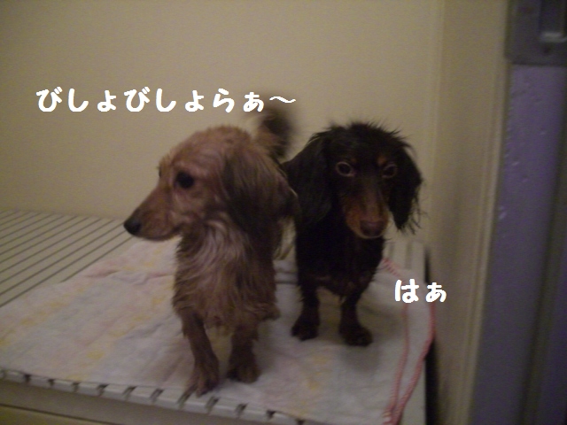 キョロの撥水効果はまったくなく・・・ラッしゃんがおぶから上がると壁も床もビショビショ。