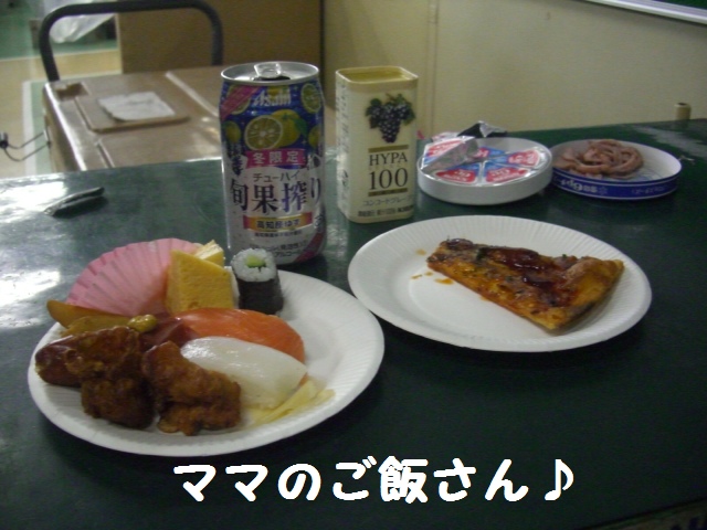 皆で乾杯した後、ママはビール君達が入っていゆケースの上で宴会♪
