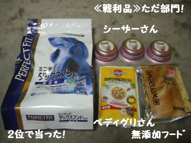 ダックスフンドのフードは2位が当ったため、1kgのフードをGET!