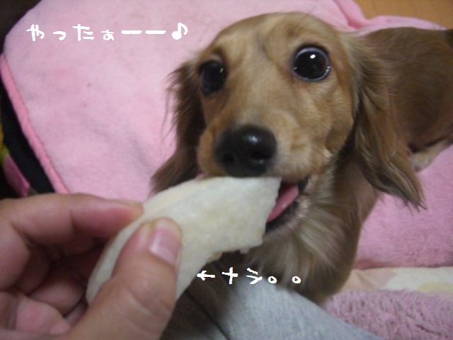 多分 食べ物を引っ張られるのが苦手なんだろーね。