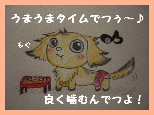 ママの夕飯が終わり、もみラテのご飯タイムになりまふた。