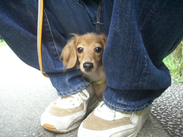 パパの足の間かりゃ、こっちを見てるんだもん~~(*^日^*)゛