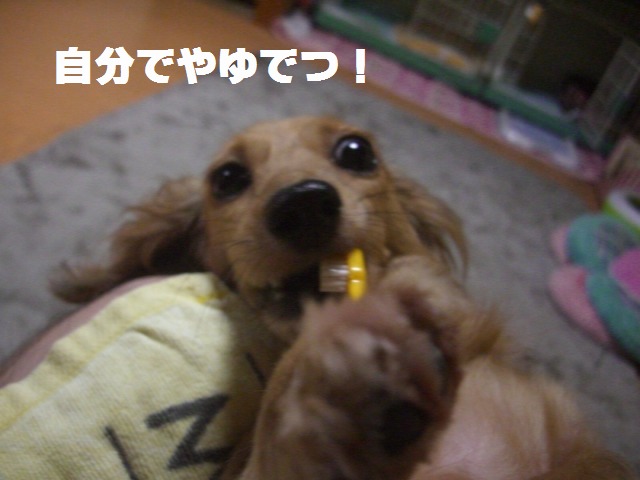 「自分でやりまつ!」と歯ブラシを持っていきまつ。