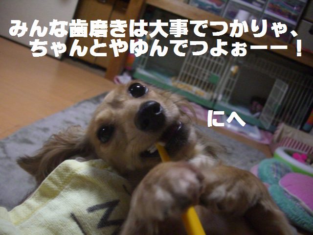 お手入れはいつも もみ様かりゃでふが、歯磨きはラッしゃんかりゃでふ。