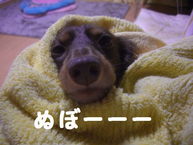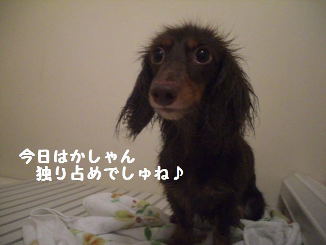 もみ様はおぶの外でずっとお座りしていたし、乾かすときも下でお座りしてまつたのれね!