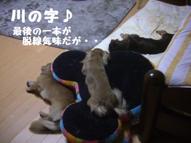 川の字になって寝ておった もみラテレオの3トリオ。