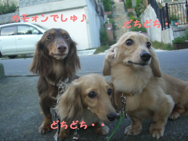 まだ陽も沈んでいないので、3わん一緒に近所のお散歩に行くことにしまつた♪