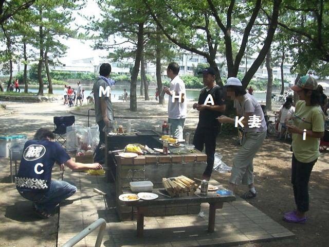 遅刻して10時30分に現地入り。上司MしゃんにBBQ場の手続きをして貰い、