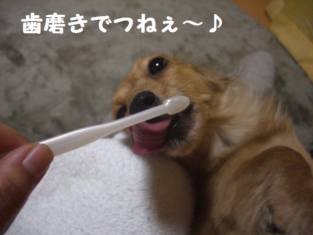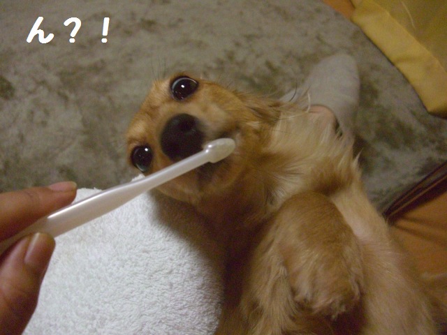 歯磨きセットを持ち出すとルンルンなんでつが、されるまでは抵抗しまつ!