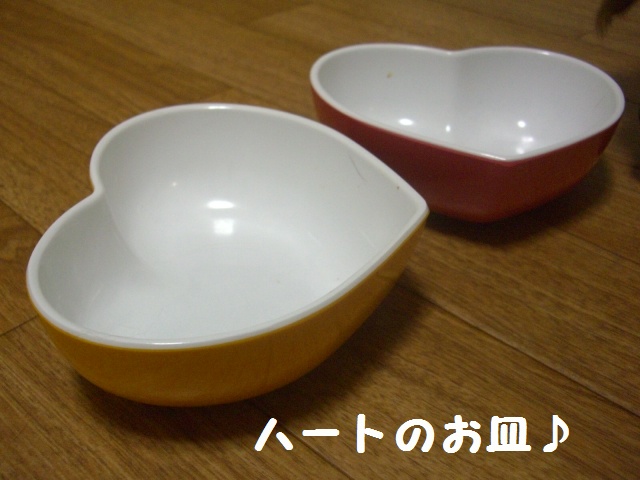 ハートのプラスチックで出来ていゆお皿。