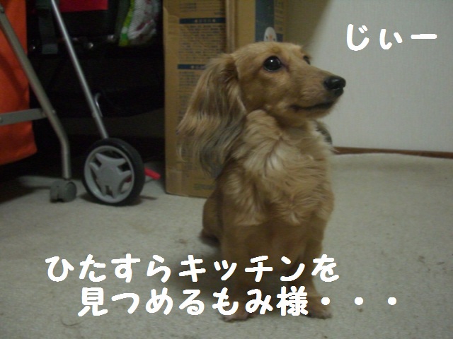 ママがキッチンを離れていゆのに、もみラテはキッチンをうろうろ。