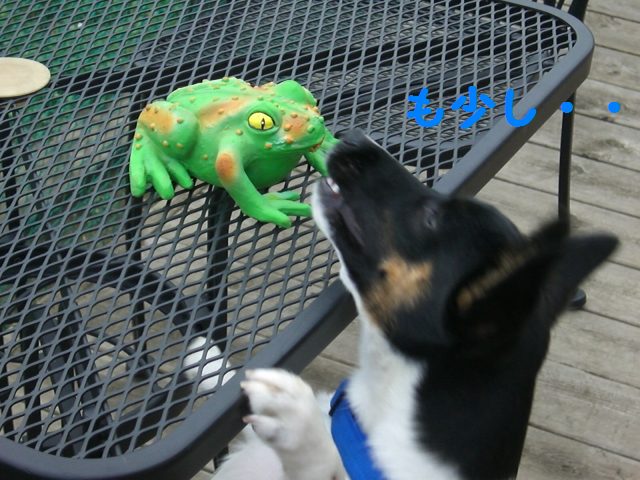 噛むと舌がべろ~~んと出る かなり手の込んだ おもたのカエルしゃん。