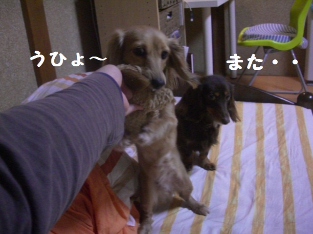ラッしゃんの気も気づかず(←わざとか?)その場で遊びだすもみ様。意地悪。