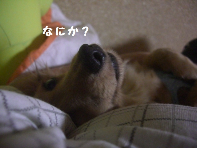 こえ・・・ママのお腹に乗っていて、ママの左腕で支えておりまふ∑(; ̄□ ̄A アセアセ