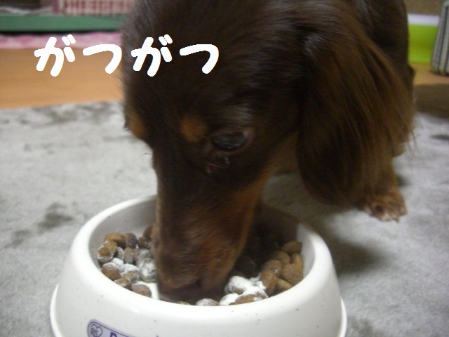 もみ様、ラッしゃんのご飯を準備して、食べるのをガンミしていゆママo(^ー^)o