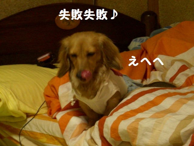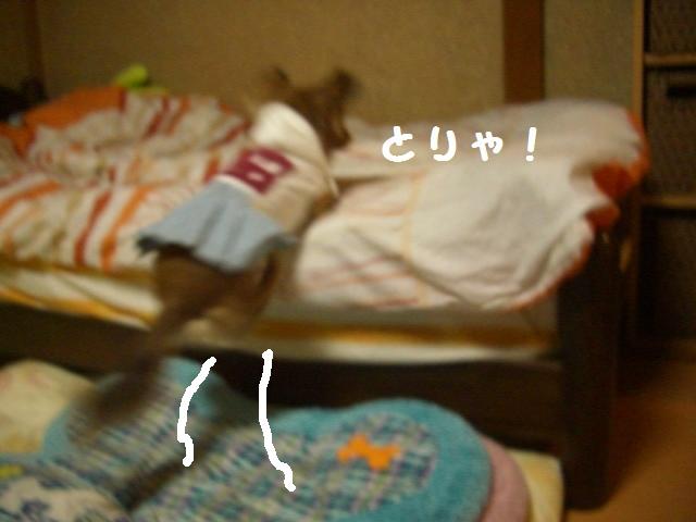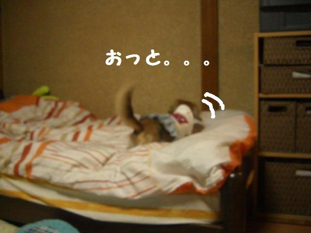 何も考えずに飛んで、ママの顔にパンチッ!腹に着地して怒られるのは・・・こげ茶の物体でつ!
