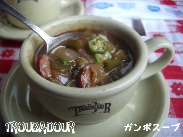 ガンボというスープでつ! なんかをジックリ煮込んで、オクラとソーセージが入ってまつ。