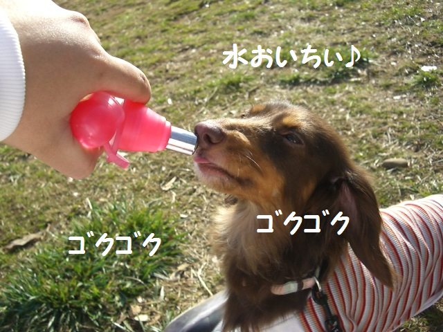 こんな日は日射病になりやすいでつかりゃ、ちゃんとお水も持っていきまつた。