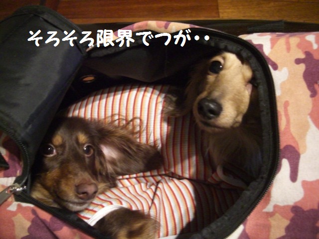 ラッしゃんはヘソ天になりたいけど、カバンの中ではムリなのれ、半ヘソ天してまつた♪