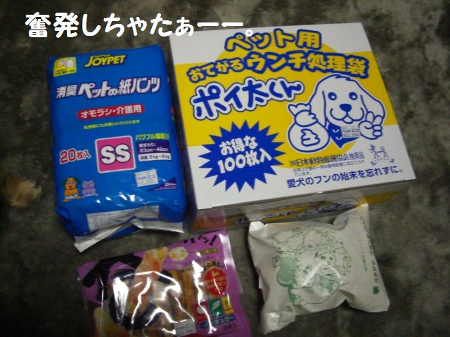 もみ様の紙パンツを補充、んち袋をまとめ購入(今までは20枚入り買ってまつた)、