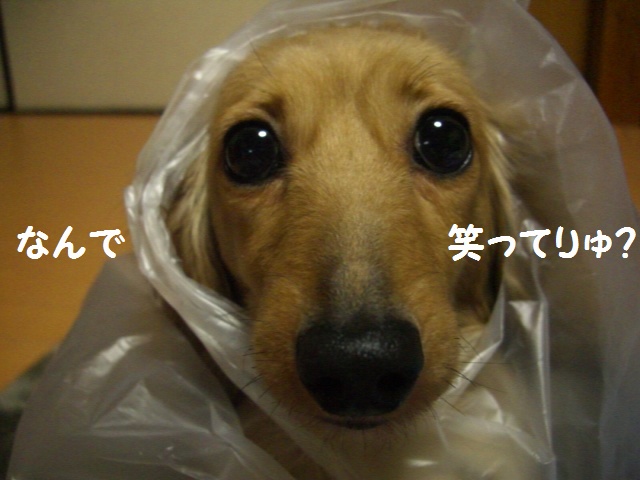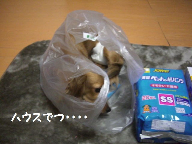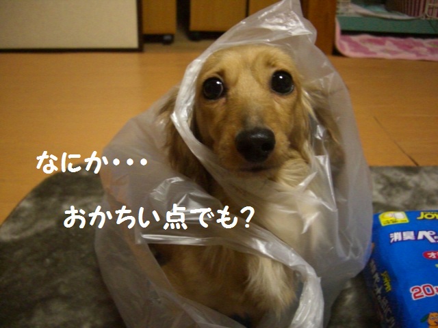 買ったものが入っていた袋の中かりゃ、いつおかちタイム?とばかしにママをストカー中。