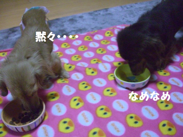 その後 今日も生肉食べて満足な2わんは寄り添ってネンネしてまつ