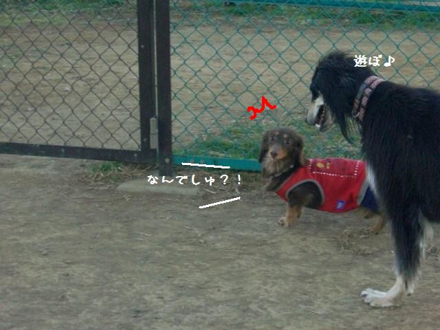 1わんは逃げ、1わんはタックルしてくゆのれ・・・・・・・・くふふ(。-_-。)
